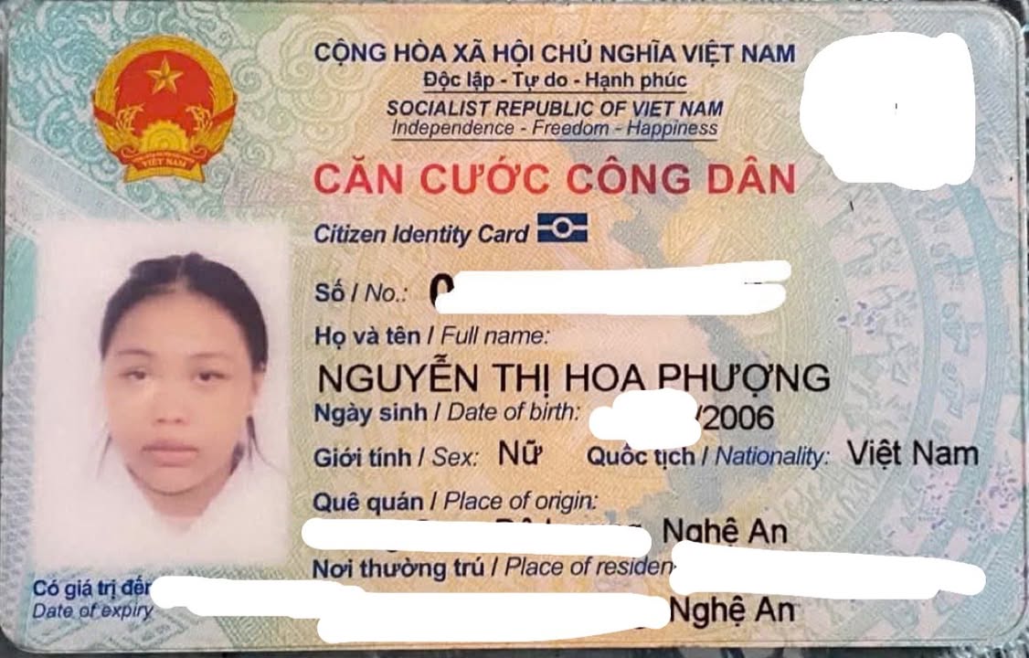 RƠI CCCD ở Hà Nội tên Nguyễn Thị Hoa Phượng 2006 Nghệ An
