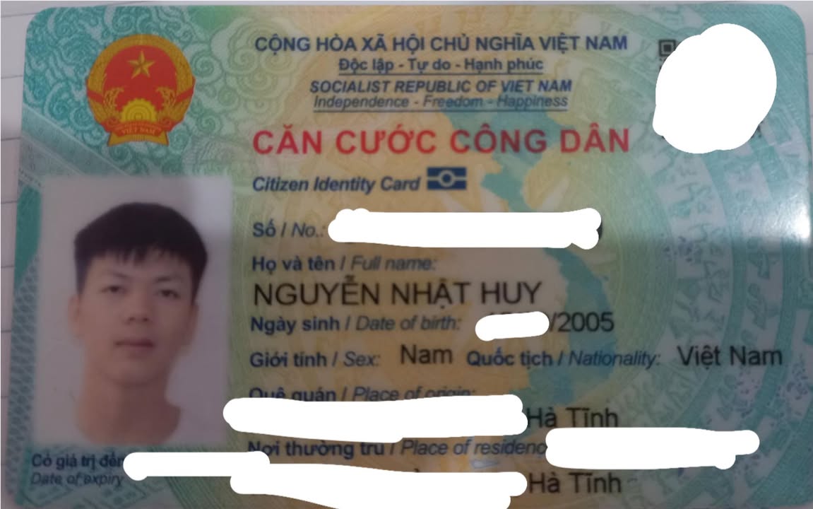 Rơi ví giấy tờ ở Hà Nội tên Nguyễn Nhật Huy 2005 Hà Tĩnh
