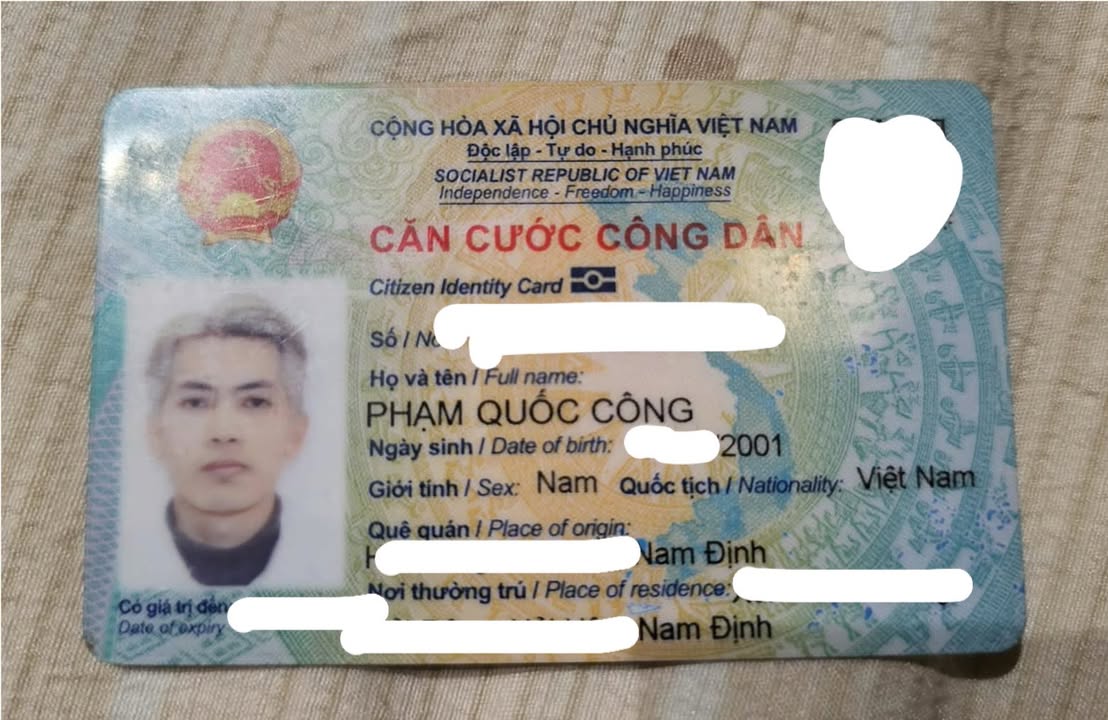 Rơi ví giấy tờ ở Thanh Xuân Hà Nội tên Phạm Quốc Công 2001 Nam Định