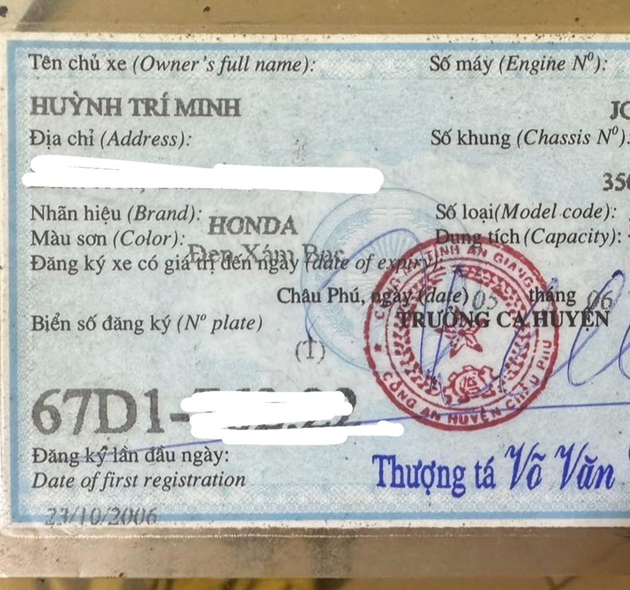 Tìm cavet xe tên Huỳnh Trí Minh rơi từ HCM-> An Giang