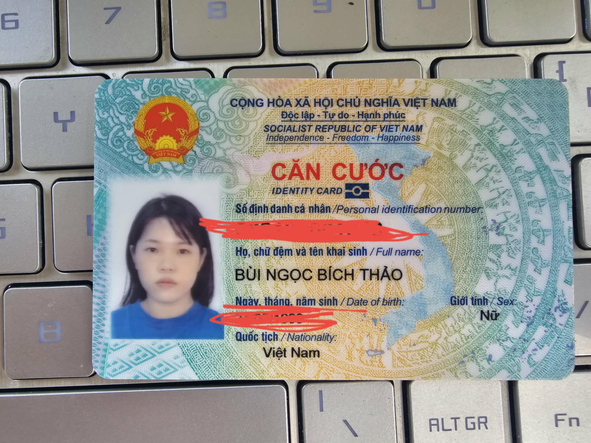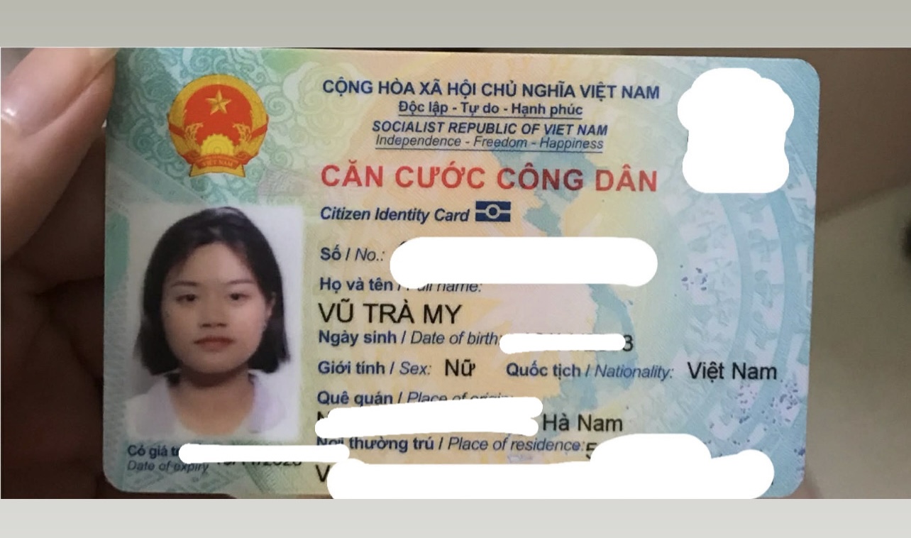 Rơi căn cước ở Nam Định hoặc Hà Nội tên Vũ Trà My 2003